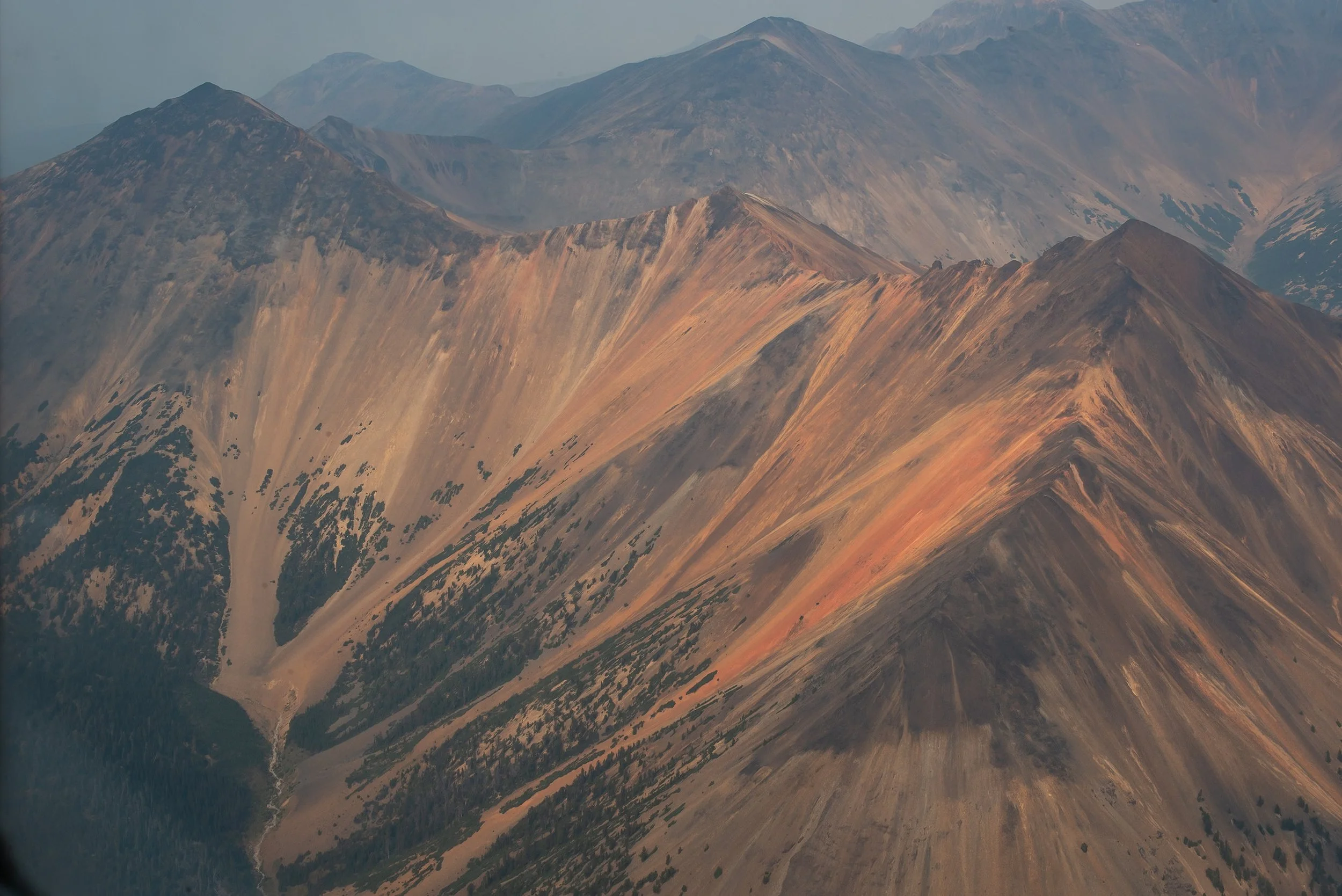 The skies were still smoky, but there was some visibility, so we went. Despite the smoke, the scenery was stunning. We flew over the Rainbow Range, barely west of the fires.
